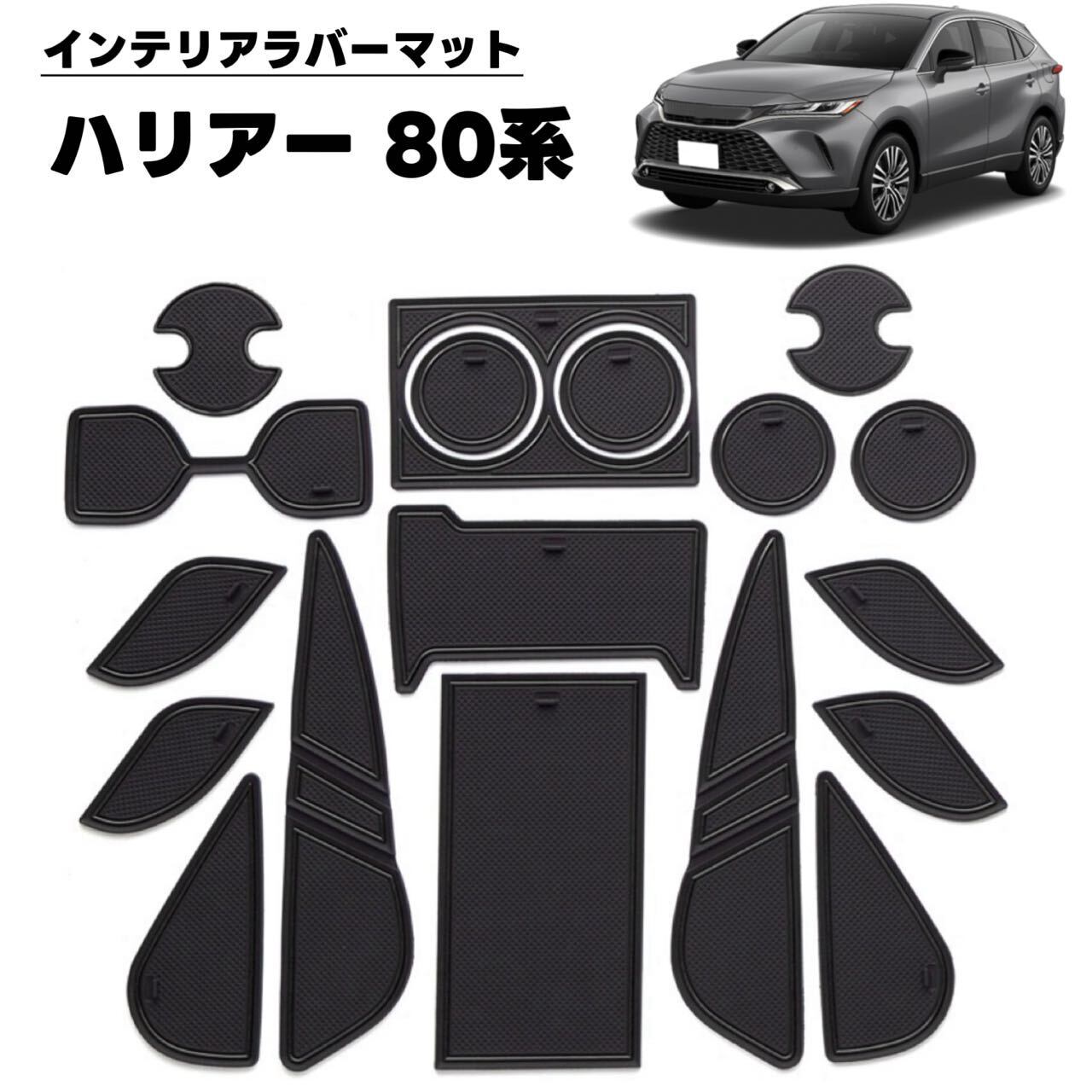 Harrier ハリアー 80系 対応 車用 インテリアラバーマット ドアポケットマット ノンスリップマット フロアマット コンソールマット ゴムマット 内装パーツ 耐久性 防水 汚れ防止 騒音防止 車の滑り止めシート アクセサリー 保護カバー 18ピース ブラック×ブラックライン car-95-03 | banantengi