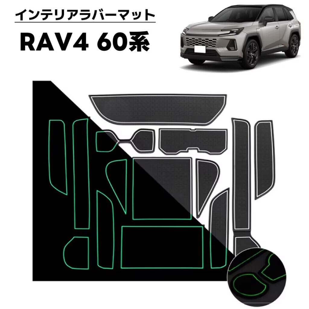 RAV4 60系 対応 車用 インテリアラバーマット ドアポケットマット ノンスリップマット フロアマット コンソールマット ゴムマット 内装パーツ 耐久性 防水 汚れ防止 騒音防止 車の滑り止めシート アクセサリー 保護カバー 13ピース ブラック×ホワイトライン(ホワイト部分のみ夜光) car-131-02