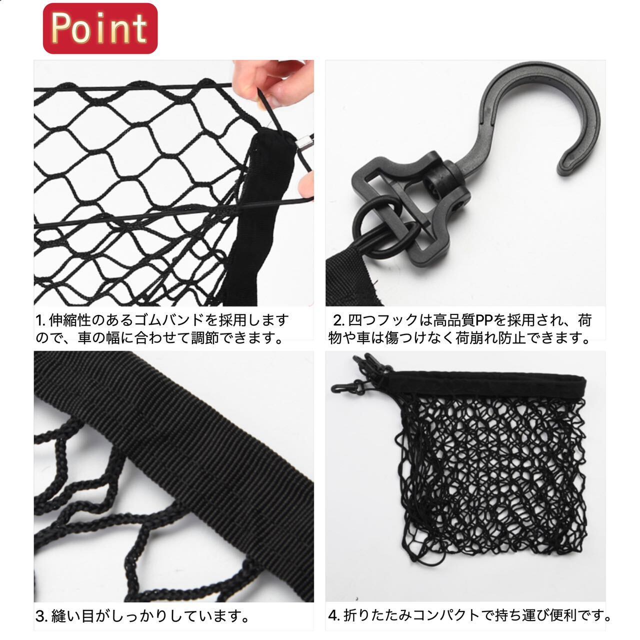 ・伸縮性のあるネットを採用しているので様々な大きさの荷物に対応可能です。