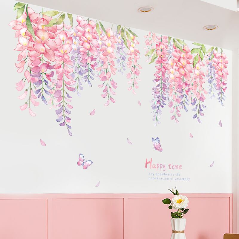 hesperus ウォールステッカー BC001 ガーデン 吊り葉 ピンク 藤の花 自然 癒す DIY 壁紙 インテリアシート 剥がせるシール 送料無料