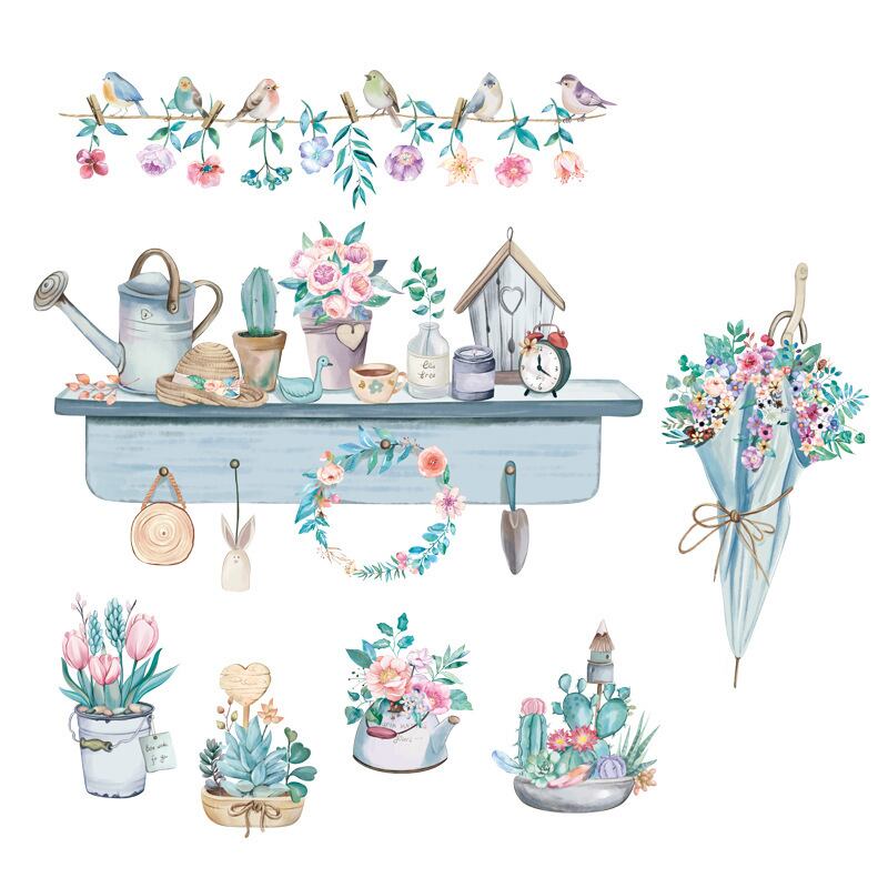 ウォールステッカー BAD106 ガーデン ブルー花束 植木鉢 癒す DIY 壁紙 インテリアシート 剥がせる 送料無料