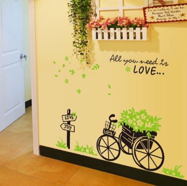 ウォールステッカー BB042 花束自転車 葉 癒す DIY 壁紙 インテリアシート 剥がせるシール 送料無料