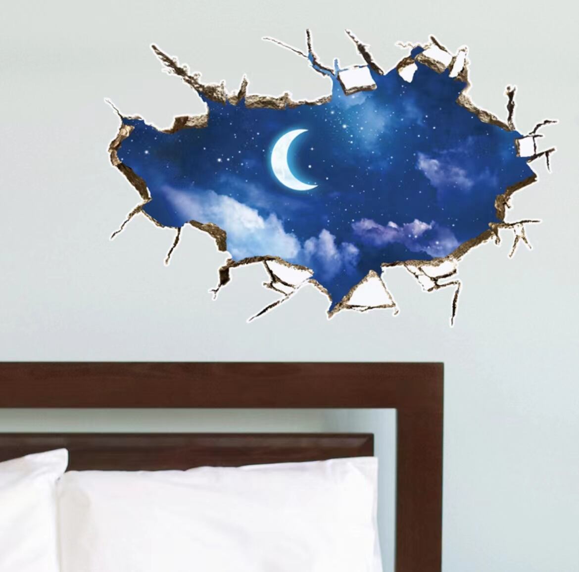 ウォールステッカー BB080 3D 夜景 月 星 夜の空 癒す DIY 壁紙 インテリアシート 剥がせる 送料無料