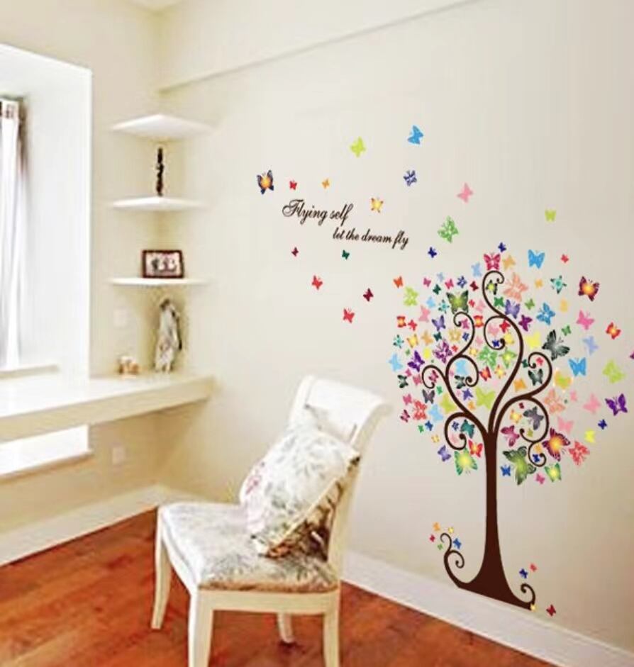 ウォールステッカー BB099 蝶のツリー 幸せ 癒す DIY 壁紙 インテリアシート 剥がせる 送料無料
