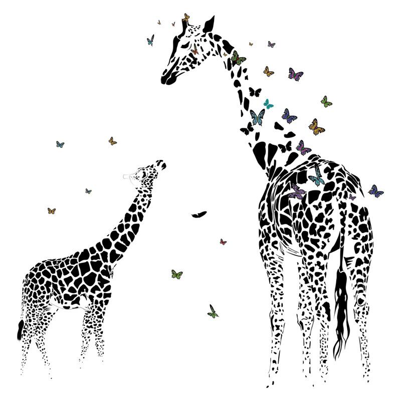 ウォールステッカー BB146 親子キリン ブラック 動物 癒す DIY 壁紙 インテリアシート 剥がせるシール 送料無料