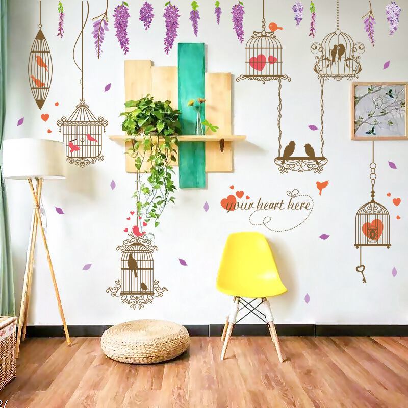 ウォールステッカー BB178 ガーデン 吊り鳥籠 葉 自然 癒す DIY 壁紙 インテリアシート 剥がせるシール 送料無料