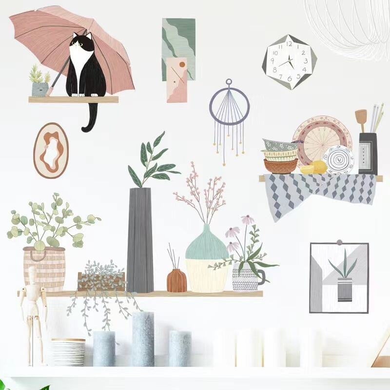 ウォールステッカー BAC042 ガーデン ネコ 植木鉢 自然 癒す DIY 壁紙 インテリアシート 剥がせるシール 送料無料