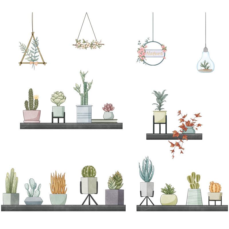 ウォールステッカー BAC059 ガーデン 植木鉢 癒す DIY 壁紙 インテリアシート 剥がせるシール 送料無料
