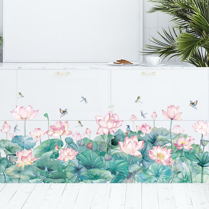 ウォールステッカー BAC125 ハスの花 ナチュラル 癒す DIY 壁紙 インテリアシート 剥がせるシール 送料無料
