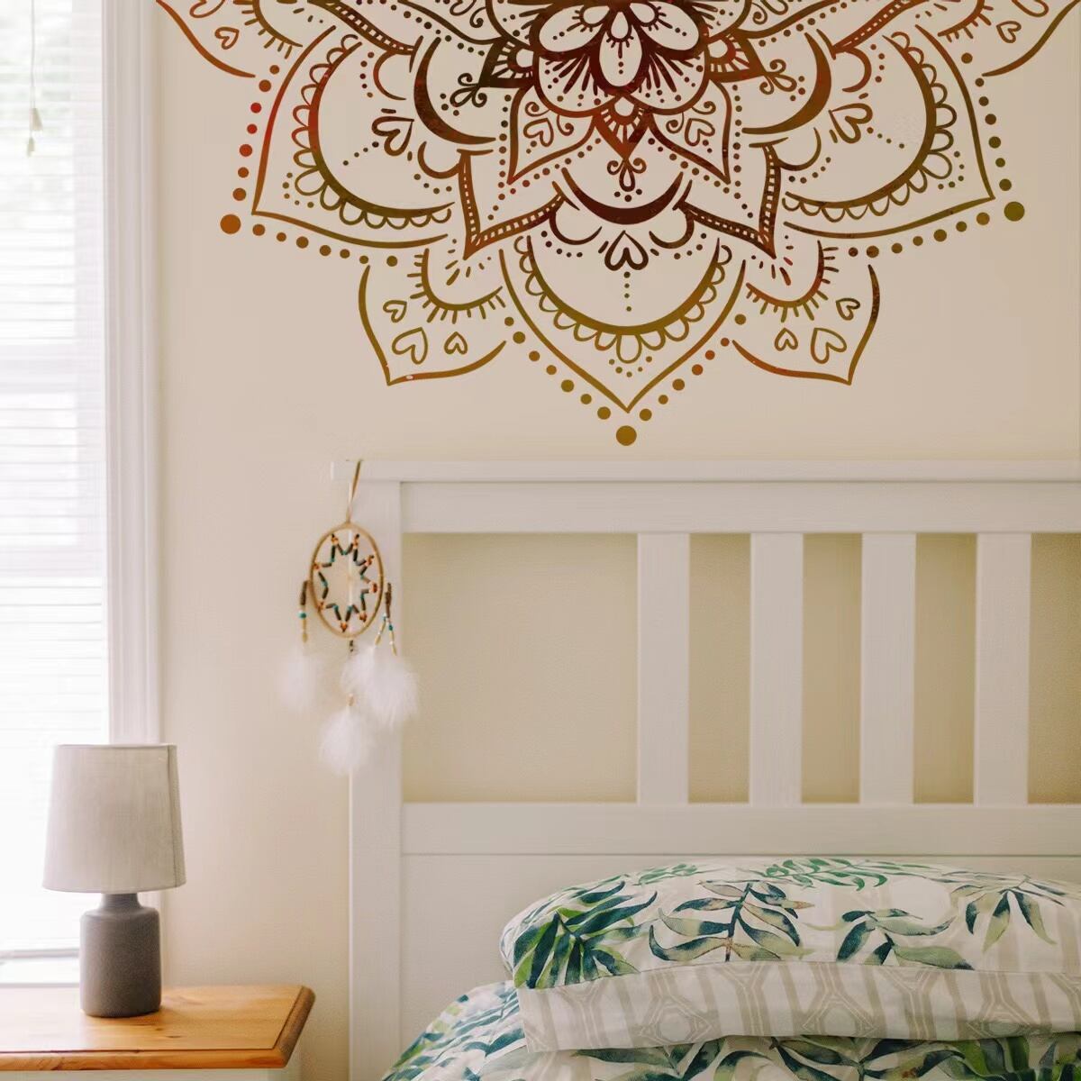 ウォールステッカー BED032 曼荼羅 花 ゴールド 癒す DIY 壁紙 インテリアシート 剥がせるシール 送料無料