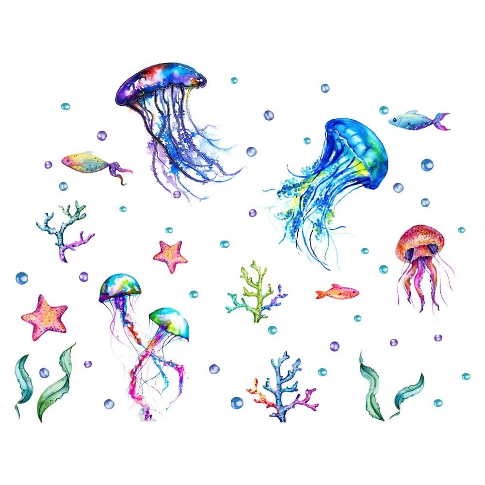 ウォールステッカー BED035 海底世界 クラゲ 癒す DIY 壁紙 インテリアシート 剥がせるシール 送料無料