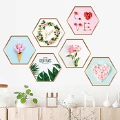 ウォールステッカー BB185 ピンク花 リース 六角形の枠 癒す DIY 壁紙 インテリアシート 剥がせるシール 送料無料
