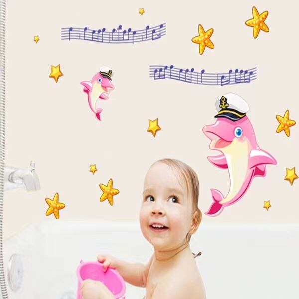 ウォールステッカー BB214 ピンクイルカ 海 可愛い 癒す DIY 壁紙 インテリアシート 剥がせるシール 送料無料