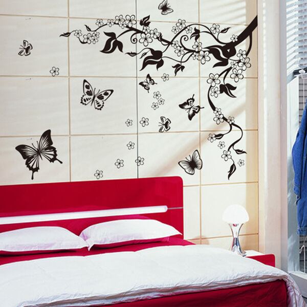 ウォールステッカー BB270 モノトーン 蝶 花 葉 癒す 癒す DIY 壁紙 インテリアシート 剥がせるシール 送料無料