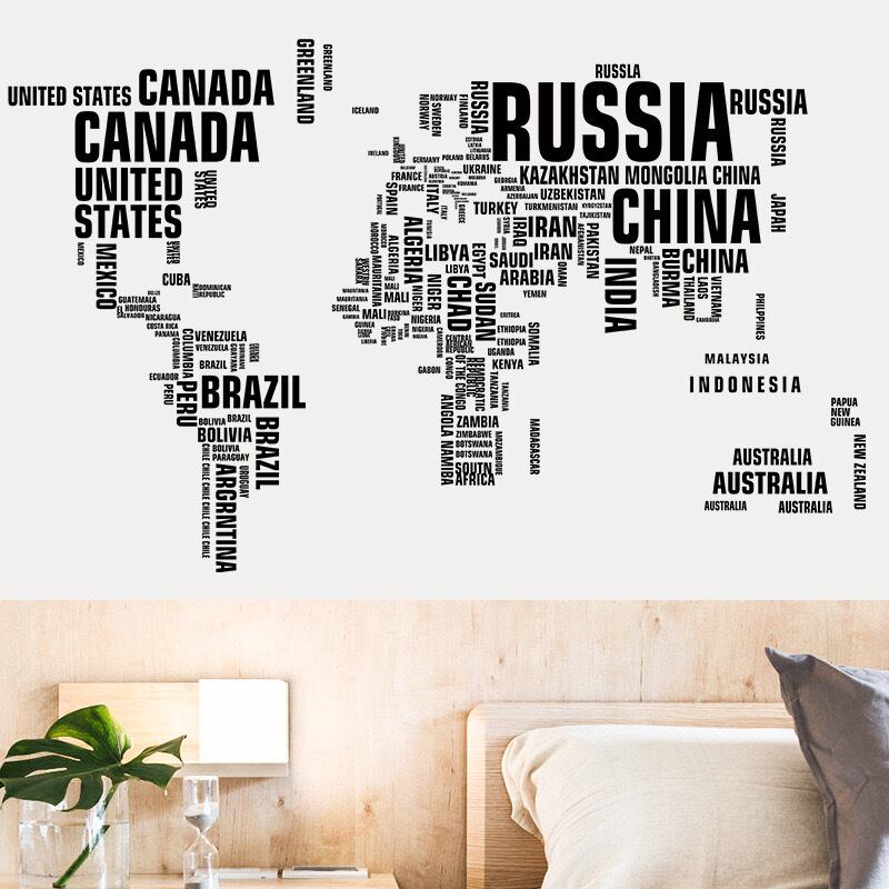 ウォールステッカー BDD026 モノトーン世界地図 英語 癒す DIY 壁紙 インテリアシート 剥がせるシール 送料無料