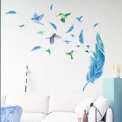ウォールステッカー BED069 ブルー羽 鳥 癒す DIY 壁紙 インテリアシート 剥がせるシール 送料無料