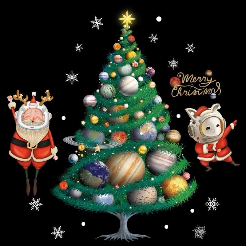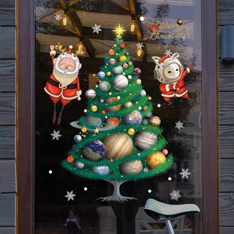 ウォールステッカー BSD060 メリークリスマス 宇宙 惑星 サンタクロース ウサギ 雪花 DIY壁紙インテリア窓シート剥がせる 送料無料