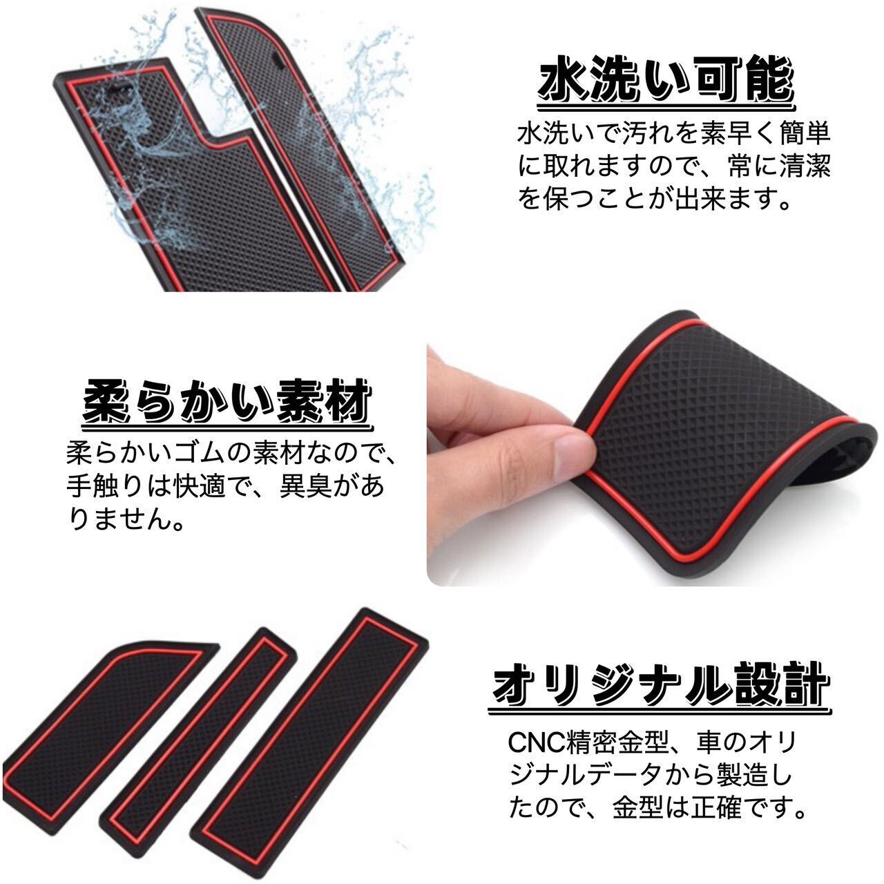 ・車を守る:柔らかい滑り止めゴムマットで、車の振動を吸収し、車をキズから守るだけでなく、運転中で小物の滑りによる雑音を軽減します。