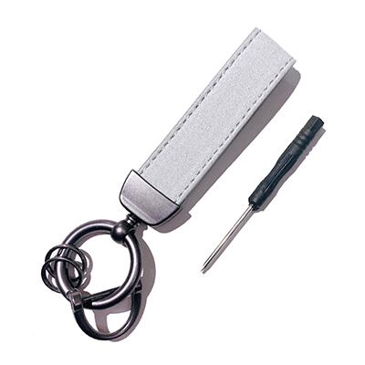 キーホルダー カーキーホルダー レザー 男女適用 レディース メンズ 360度回転 紛失防止Dリング リング付き ドライバー付き グレー K-11-01
