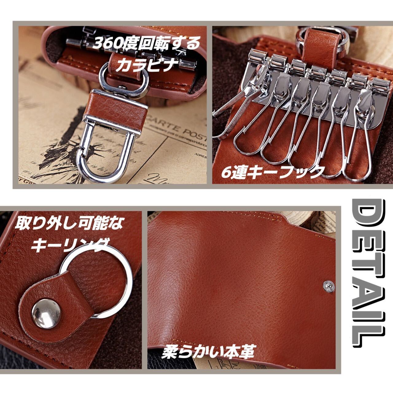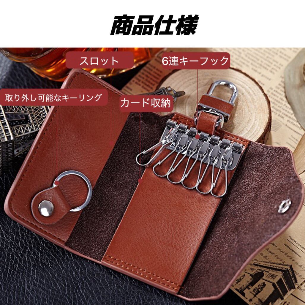 スマートキーケース 本革 カード収納 鍵入れ 車 キーホルダー 6連 男女兼用 レディース メンズ 多機能 コンパクト 高級感 シンプル ブラウン K-25-02