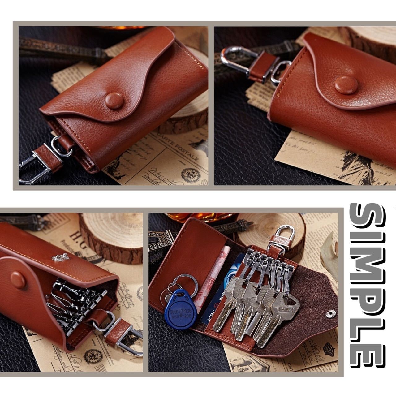 ・必要十分な収納力:6連のキーフックがあり、たくさん入れます。そして、内側にカードポケットがあって、カードの収納が便利でございます。