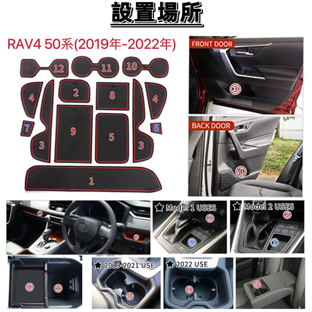 RAV4 50系 2019年-2022年 インテリアラバーマット 車種専用設計 ドアポケットマット ノンスリップマット フロアマット コンソールマット ゴムマット 内装パーツ 耐久性 防水 汚れ防止 騒音防止 車の滑り止め アクセサリー 保護カバー 14ピース ブラック×ホワイト | banantengi