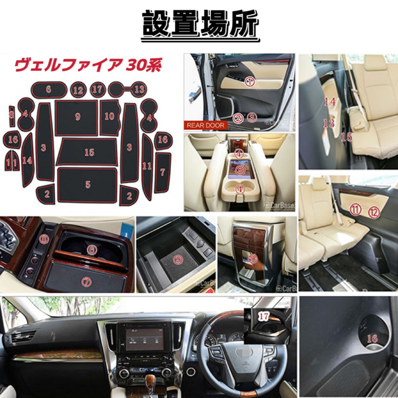 アルファード ヴェルファイア 30系 インテリアラバーマット 車種専用設計 ドアポケットマット ノンスリップマット フロアマット コンソールマット ゴムマット 内装パーツ 耐久性 防水 汚れ防止 騒音防止 車の滑り止め アクセサリー 保護カバー 22ピース ブラック×ホワイト 夜光 | banantengi