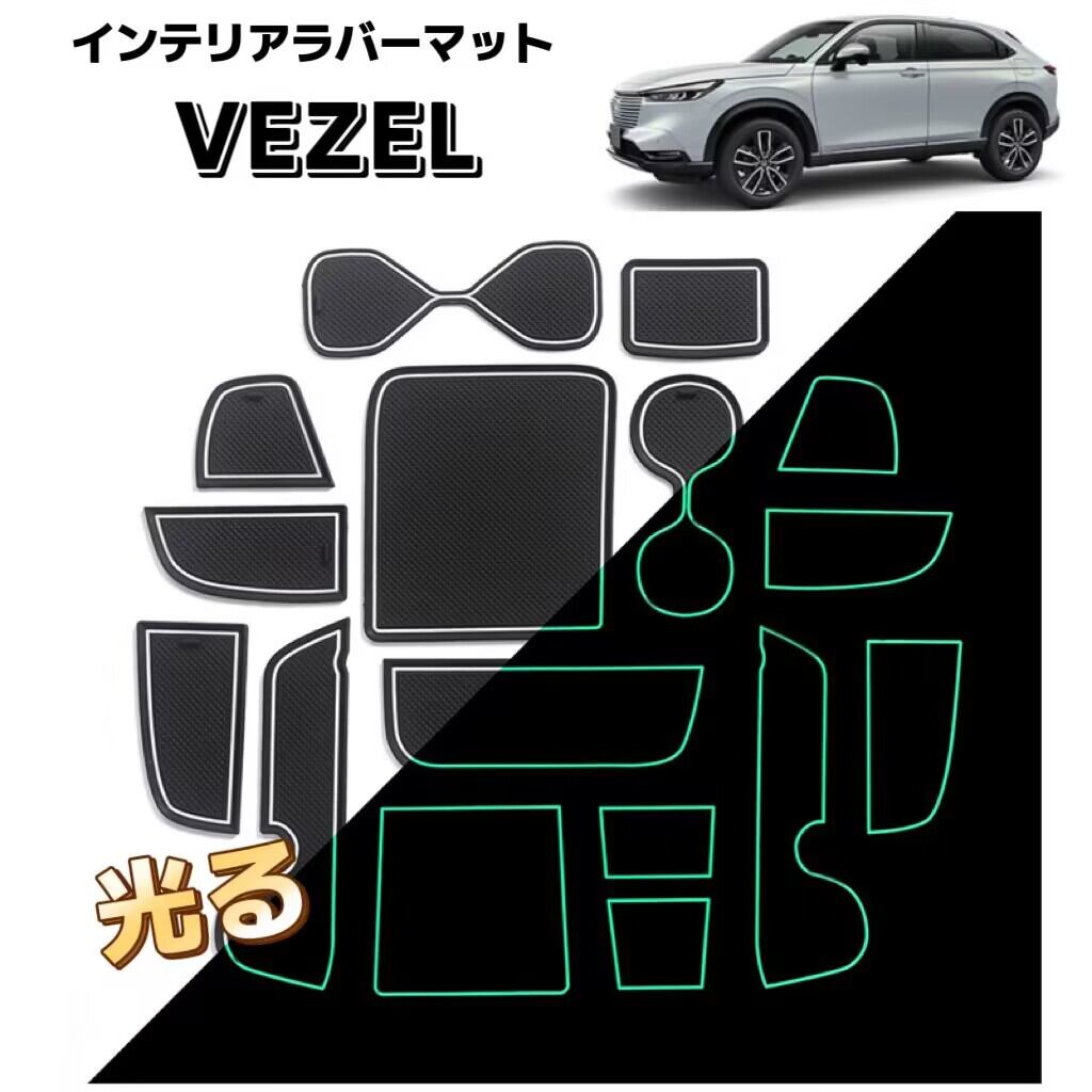 VEZEL ヴェゼル用 対応 インテリアラバーマット ドアポケットマット ノンスリップマット フロアマット コンソールマット ゴムマット 内装パーツ 耐久性 防水 汚れ防止 騒音防止 車の滑り止め アクセサリー 保護カバー 15ピース ブラック×ホワイト 夜光 car-17-02